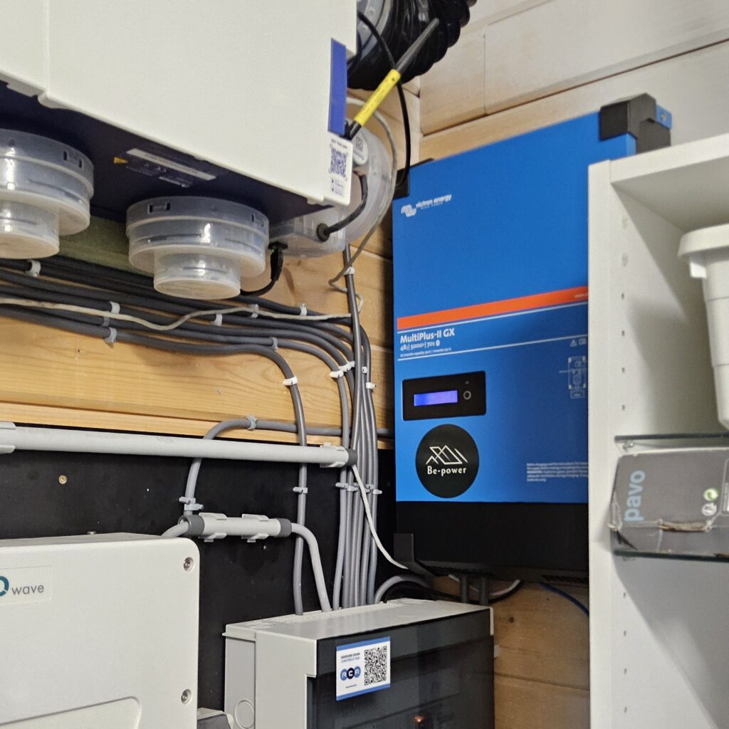In dit geval hebben we omvormer en batterij dicht bij het hoofdzekering kunnen zetten om toch een volledige backupfunctie te kunnen voorzien.